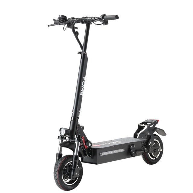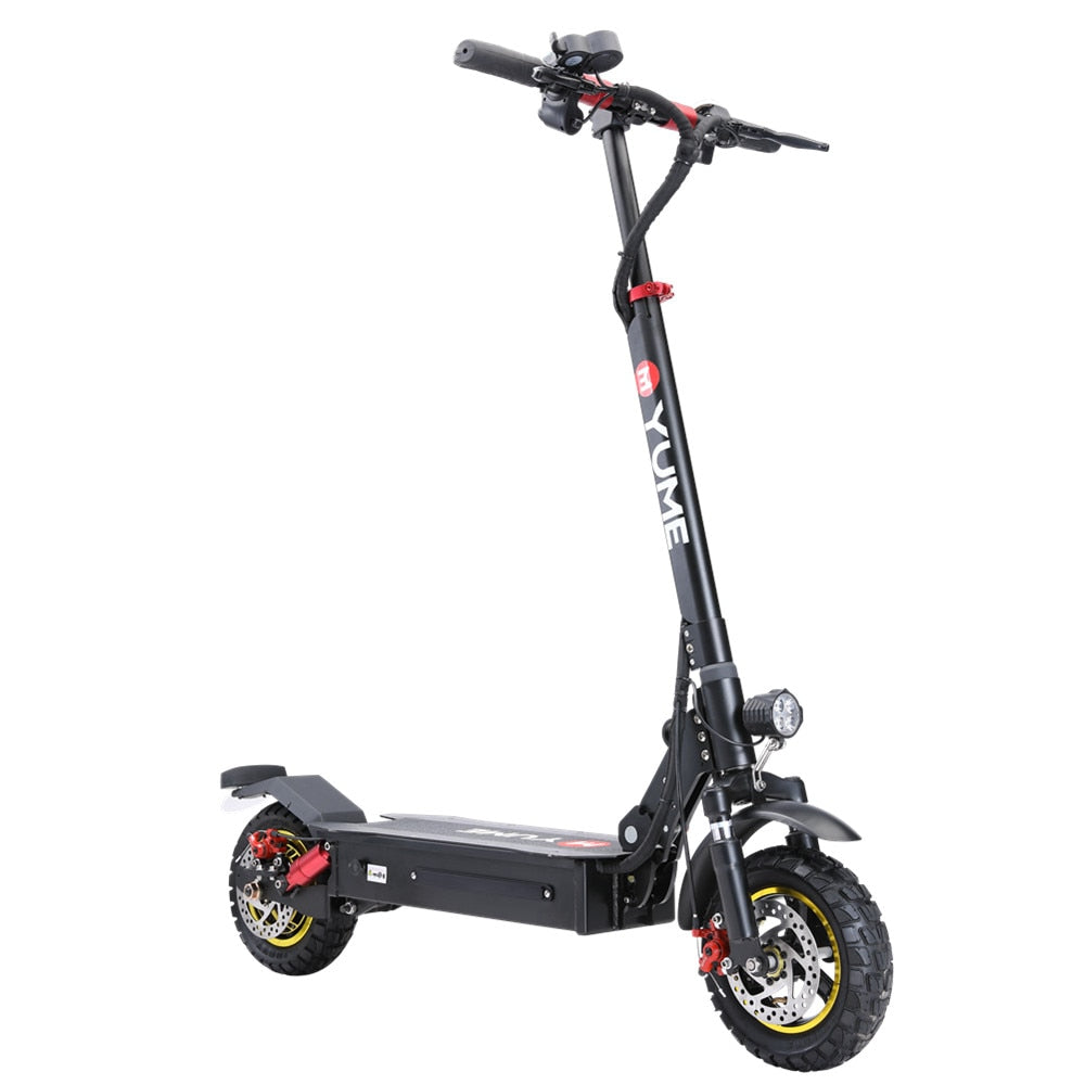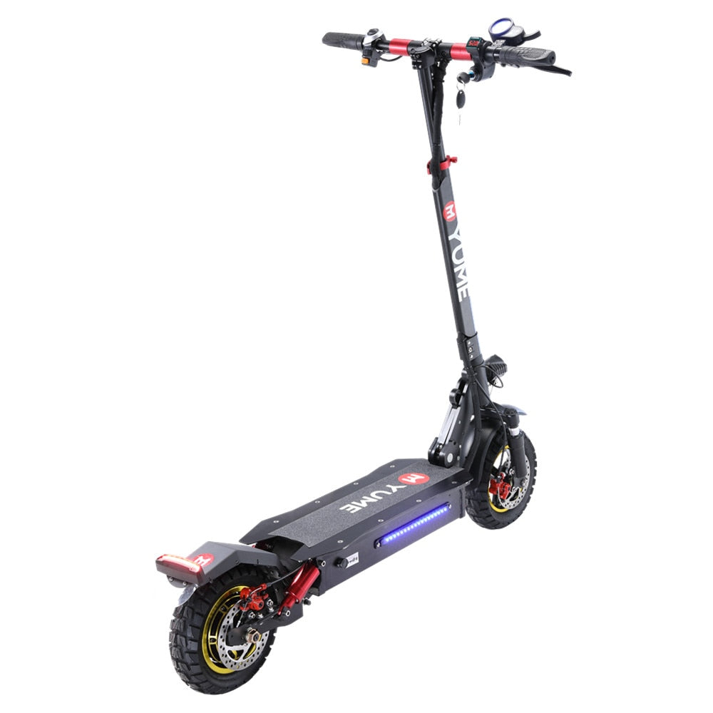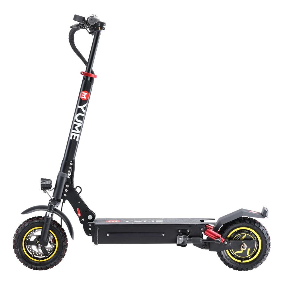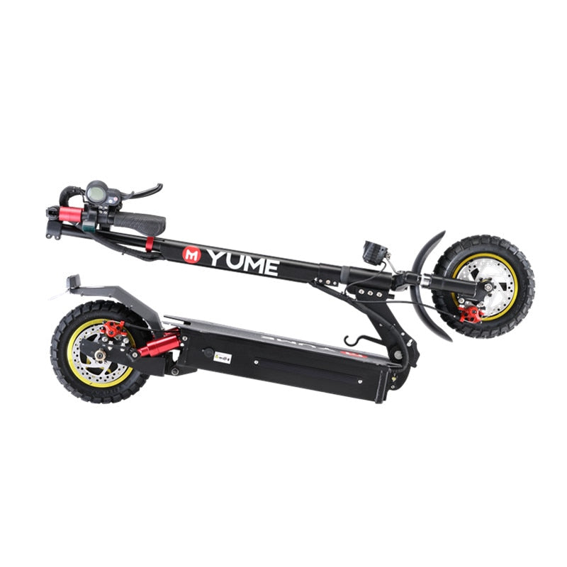 The YUME YMS10 will take you where you want to go! With a range of 50km, a top speed of 55km/h and enough torque to climb 45 degree hills! this is a very capable scooter. The S10 is well built with plenty of suspension, a comfortable wide deck, height-adjustable handlebars and it folds down in about seconds for easy transport and storage. It has an ultra-bright headlight and responsive break light, front and rear brakes, turn signals and cool ambient lighting under the deck.